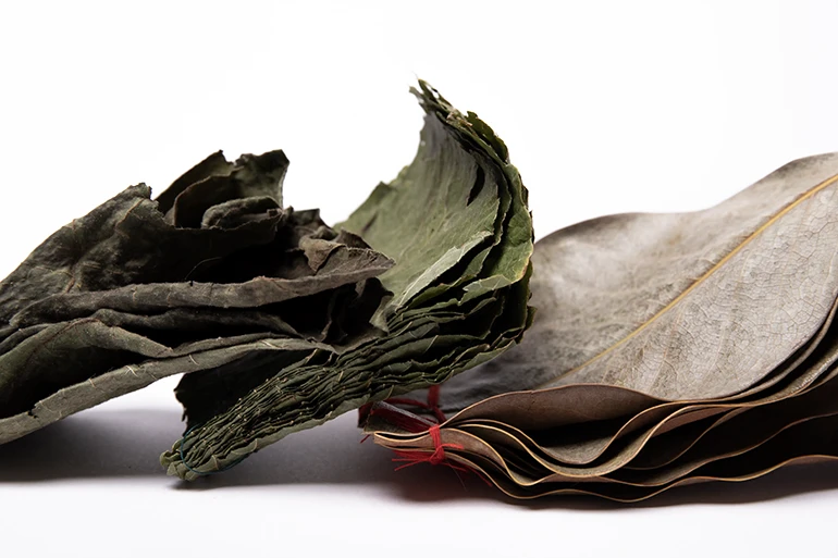 Présentation de mini herbiers reliés avec une reliure japonaise, avec Anya Romanenko et Dhéjy Gadiot