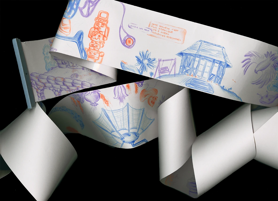 Si le cadre trop limitant laissait penser que l'infinité l'était moins, c’est ici que l’on se rend compte de cette illusion. Conditionné aux cloisons, il a fallu penser sur la longueur, non plus sur un format rectangulaire